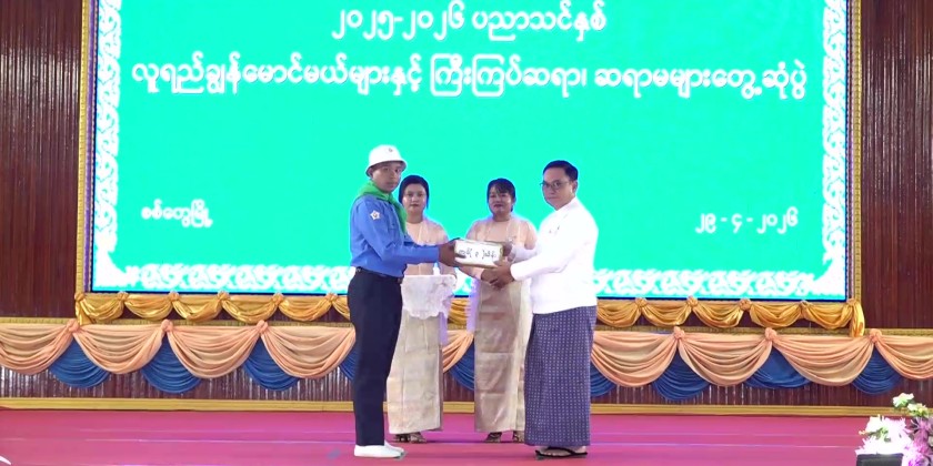 Afterwards, the Chief Minister and his wife, the State Hluttaw Speaker Dr San Shwe, and officials presented honorary cash awards to the outstanding students and their supervising teachers.
