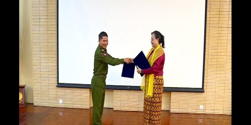 Then, chairman of the Pa-O National Liberation Organization-PNLO Khun Thurein on behalf of the attendees of EAOs and the leader of State Peace Talks Team Lt. Gen. Yar Pyae gave speeches of conclusion and a book of the State Administration Council’s efforts for the interests of the country, book on coalition politics, MRTV DTH Receiver, 2 feet satellite dishes and gifts were presented.