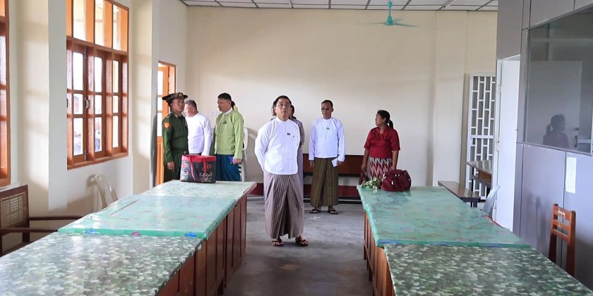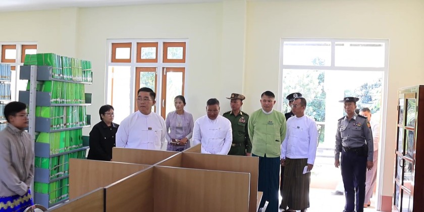 He also warmly greeted and encouraged the teachers and staff. Afterwards, the Chief Minister and officials inspected the main building of Loikaw University, the accommodation arrangements for the professors, lecturers, and instructors who would be serving, and the dormitories, bathrooms, sanitation facilities, and dining halls prepared for the students to study peacefully. They also reviewed the condition of classrooms, theaters, furniture, and sanitation facilities, noting necessary requirements and coordinating with the responsible officials.