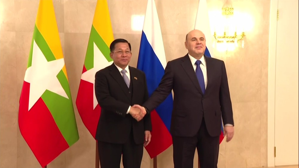 The Chairman of the State Administration Council, Prime Minister Senior General Min Aung Hlaing, who is on an official goodwill visit to Moscow, the Russian Federation, met with the Prime Minister of the Russian Federation, Mr. Mikhail Vladimirovich Mishustin, in the meeting hall of the Russian Government House in the afternoon local time on March 4.
