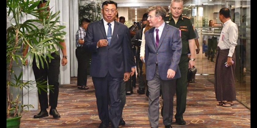 At 8 Am local time on 24th April, the NSA Union Minister Admiral Moe Aung accompanied by Myanmar Consule General in St. Petersburg attended the 4th ASEAN-Russia Consultation of the High Representatives for Security Issues jointly presided by the Secretary of National Security Council of Russian Federation and Cambodian representative.