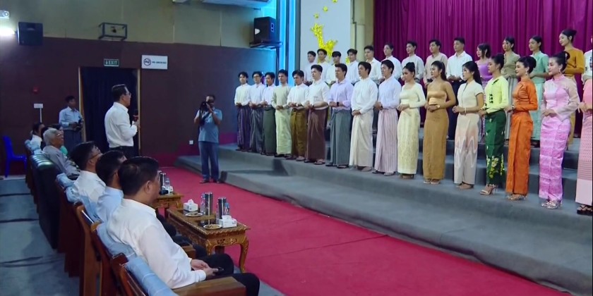During the meeting, the Union Minister expressed his pride and joy for the young men and women chosen as receptionists for the 2025 Myanmar Motion Picture Awards. He stated that artists are creators, and becoming a prominent artist is not easy. He encouraged those selected as receptionists to strive to become distinguished artists.