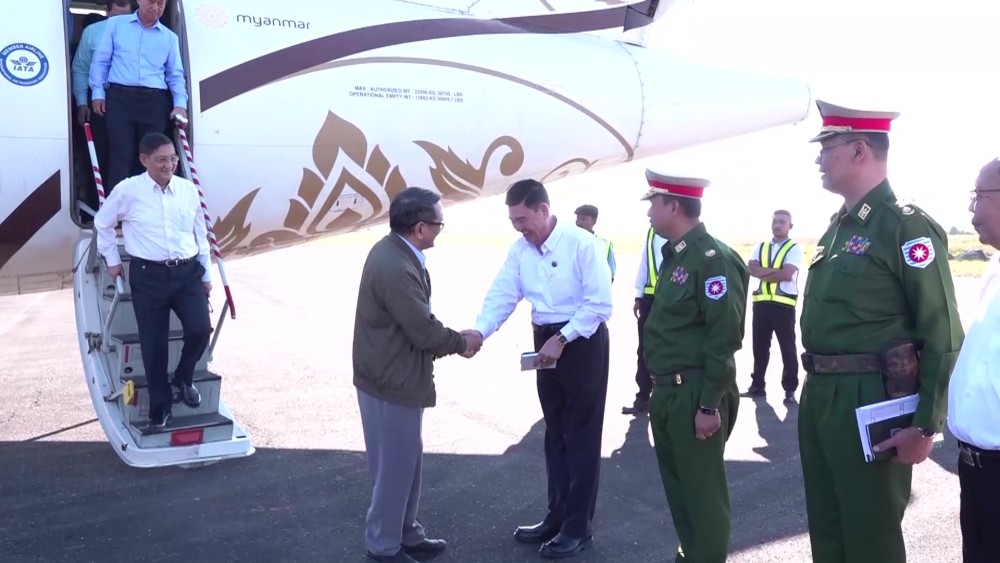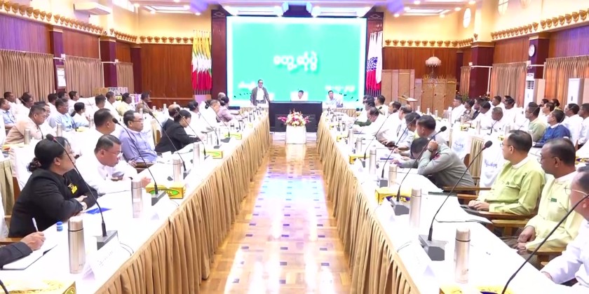 Members of the State Administration Council Dr Hmu Htan, Dr Ba Shwe and Khun San Lwin together with Union Minister for Border Affairs Lt-Gen Tun Tun Naung, Union Minister for Ethnic Affairs Jeng Phang Naw Taung, and officials held with a meeting with State level departmental personnel in Sittwe on Saturday.
