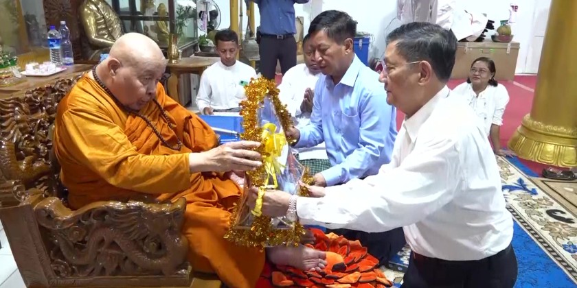 During the meeting, foodstuff were presented for the service personnel. After the meeting, the Council members and party visited Maha Zeyatheikdi Monastery and paid homage to the Residing Sayadaw, donating offertories.