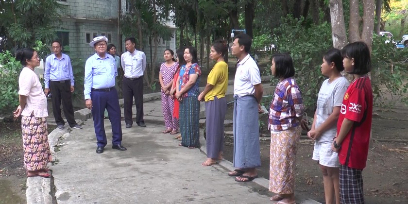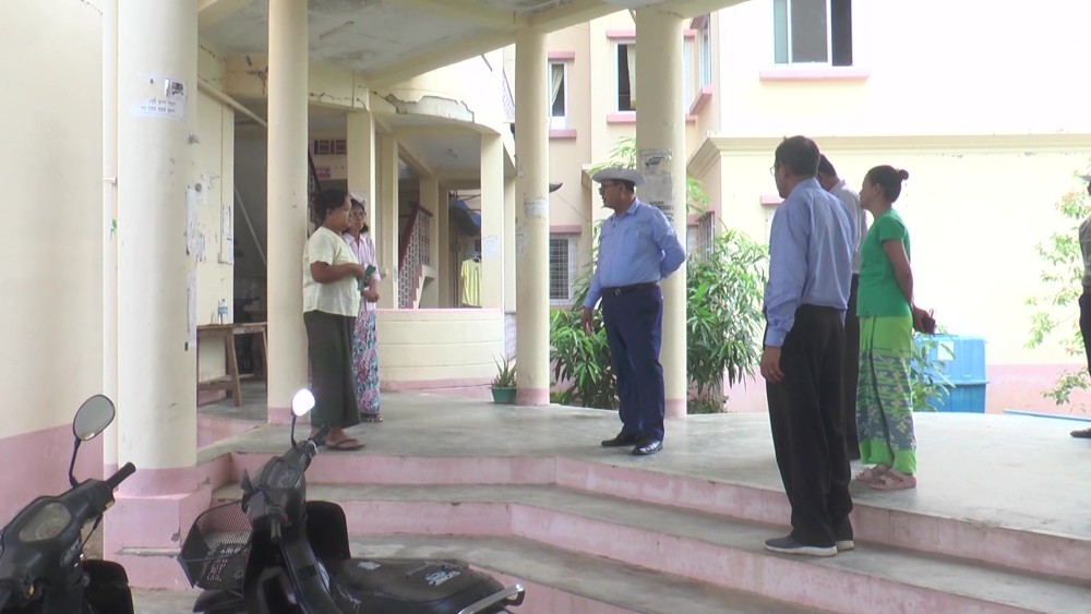 The Deputy Minister of Agriculture, Livestock and Irrigation, Dr. Aung Gyi, on May 18, visited the blue-grade apartment complexes where staff members and their families from the Ministry, who had been temporarily relocated to emergency shelters due to the recent Mandalay earthquake, have now resettled.