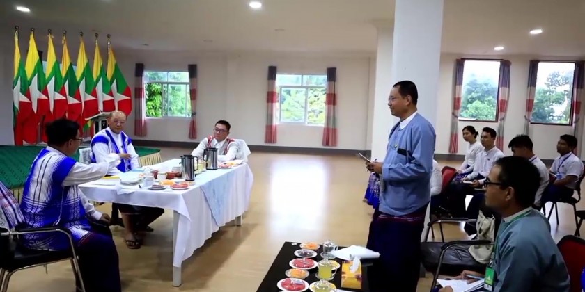 Union Minister for Ethnic Affairs Jeng Phang Naw Taung who is currently in Hpa-An Township of Kayin State together with Deputy Minister U Zaw Aye Maung and concerned officials met with the staff at the hall of State Director Office on November 7th.