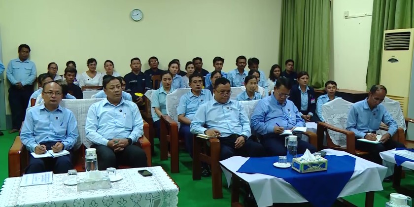 During the meeting with the staff, the Union Minister stressed the needs on preparations for upcoming multi-party democratic general election which will be held in December. He also called for systematic maintenance of staff housings for long-term durability, ensuring cleanliness and greening works in the environs.