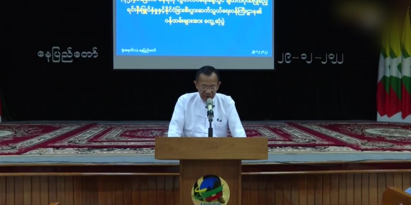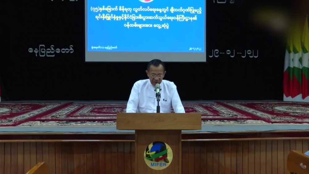 The Union Minister for Investment and Foreign Economic Relations Dr. Kan Zaw met with the civil service personnel of the ministry who will participate in the parade of honor at the 75th Anniversary Diamond Jubilee Independence Day was held at the meeting hall of the ministry, Nay Pyi Taw on Thursday.