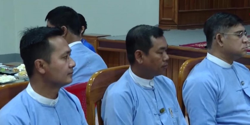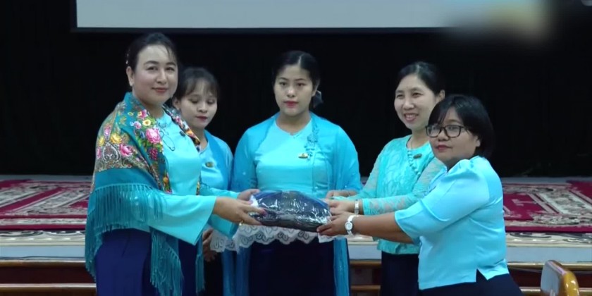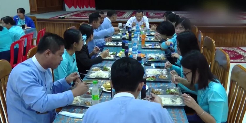 Then, the union minister and deputy minister presented uniforms for the staff personnel who will participate in the Diamond Jubilee Independence Day celebration and the representatives of the personnel accepted. Later, the union minister, deputy minister and heads of department enjoyed lunch together with the staff personnel.