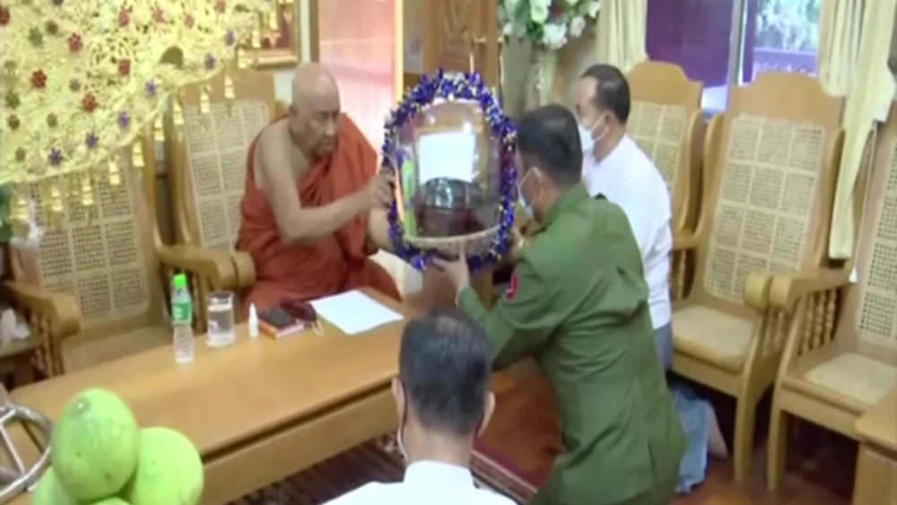 In the afternoon, the Union minister and party went to the International Sitagu Vipassana Centre on Sagaing Hill, and paid homage to Sitagu Sayadaw Dr. Bhaddanta Nyanissara and donated items and alms.