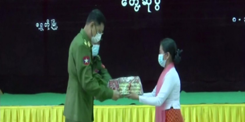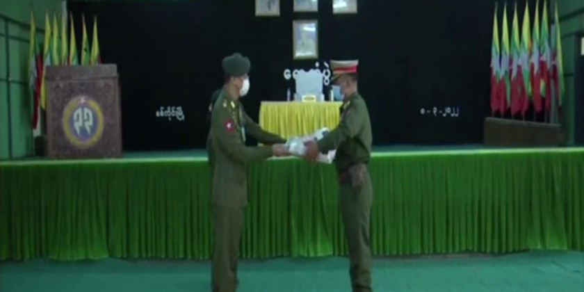 State Administration Council member Union Minister for Defence General Mya Tun Oo and party met Tatmadaw officers, other ranks and their families Tuesday morning in Shwebo and provided food items.