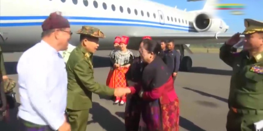 At the airport, he was warmly welcomed by the Chief Minister of Kachin State, U Khet Htein Nan, relevant officials, and ethnic traditional cultural troupes performing traditional dances. Subsequently, the Vice Chairman of the Commission, the Deputy Commander-in-Chief of Defence Services and Commander-in-Chief (Army), together with members of the delegation, proceeded to the Bala Min Htin Hall at the North Command Headquarters, where they met officers, ranks, and family members from the Myitkyina Military Station and delivered an address.