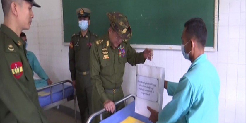 Chairman of the State Administration Council Commander-in-Chief of Defence Services Senior General Min Aung Hlaing met with the military officers, Tatmadawmen and families of local battalion in Sittwe on Sunday. In his speech, the Senior General explained the situation of Tatmadaw participating in the leading role of the national politics of the country due to the circumstances.