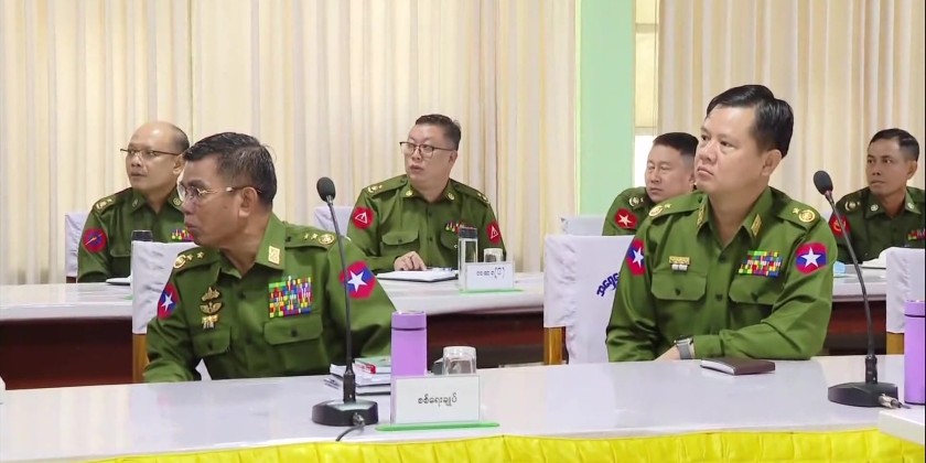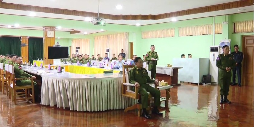 The Senior General heard reports on the measures regarding the security, rule of law, transportation, demolition in KK Park area, combating Online Scam and Online Gambling, and other issues, reported by the Commander. Upon reports, the Senior General said it is necessary to conduct military operation, security and rule of law measures in the command area successfully, and to continue combating online scam and online gambeling as the national duty.