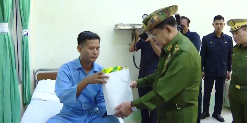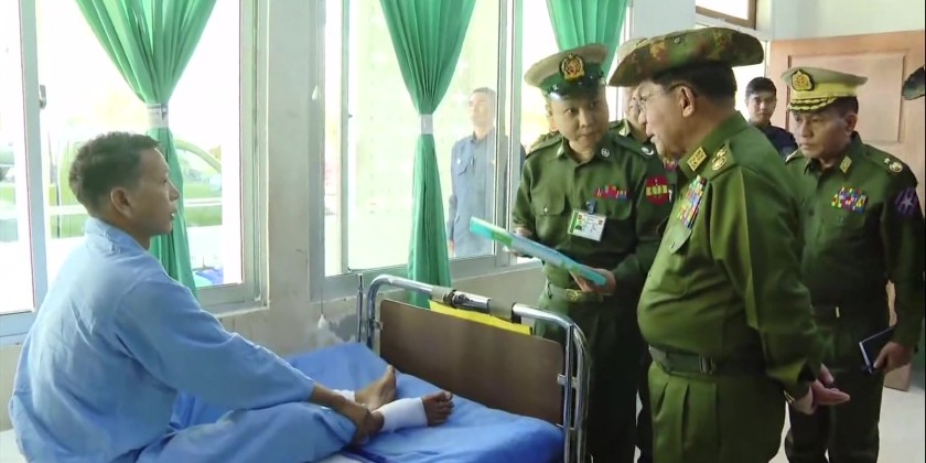 The Senior General later visited the Defence Services Hospital in Mawlamyine Station, and comforted the Tamadawmen who injured during the duties of State defence and security and fulfilled the requirements. The Senior General also provided the needs of the hospital.