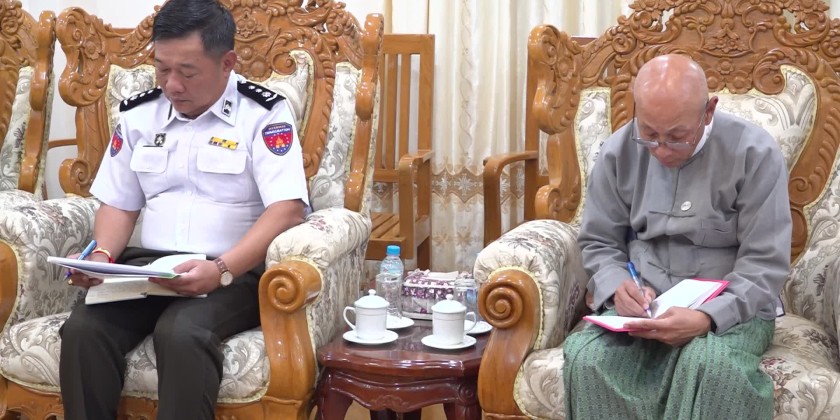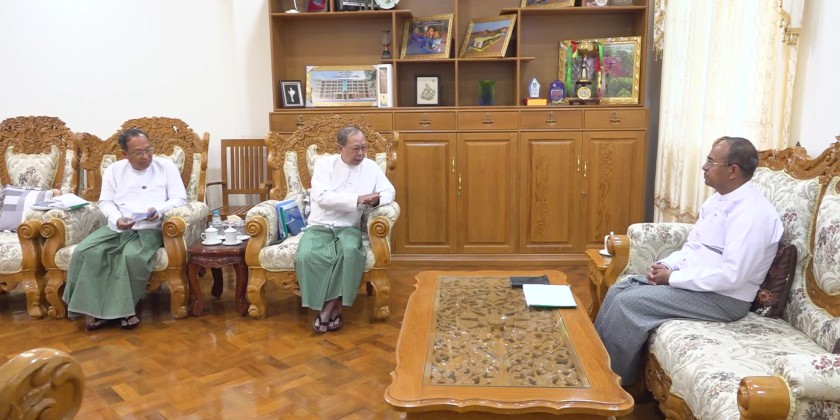 The Shan State Chief Minister U Aung Aung together with State Minister for Security and Border Affairs Col. Sein Win, Secretary of Shan State Government U Kyaw Kyaw Tun, Director of Shan State Immigration and Population Department and the Secretary of Shan State Election Commission, U Zaw Myint Win, met with Union Election Commission members U Than Soe and U Myint Oo at the Shan State Government Office in Taunggyi on 16th December.