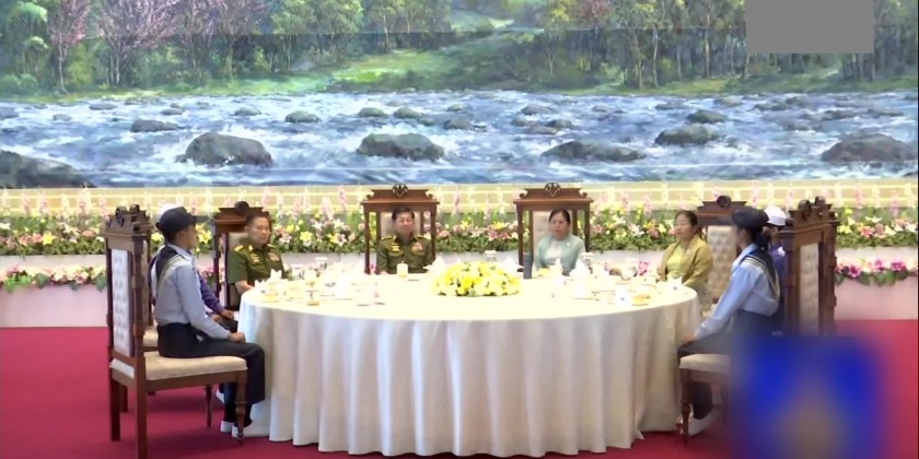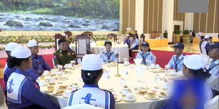 Then, the Senior General and officials hosted a tea party for the trainees. Before this meeting, the trainees who completed the Maritime and Aviation Youth Basic and Advance Training Courses 1/2024 toured round the at the Zeyar Thiri Beikman and viewed the items on display.
