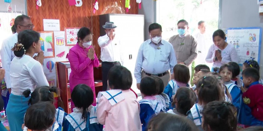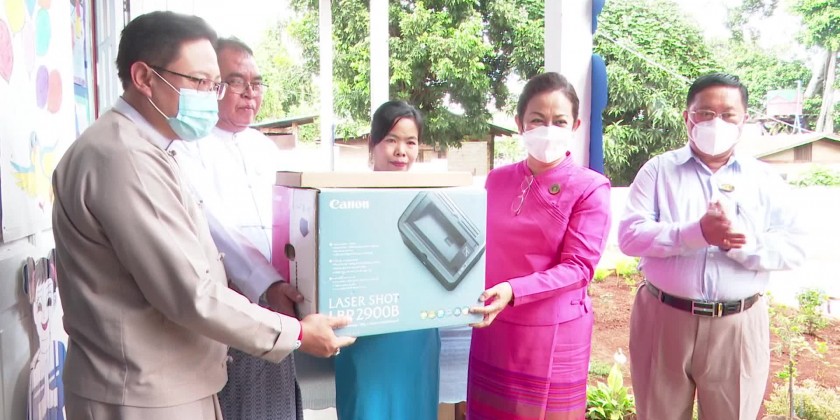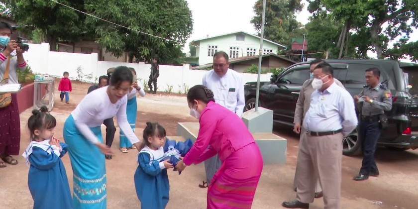Then, the deputy minister U Aung Tun Khaing and head of mision of the Chinese embassy exchanged memorable gifts and the ceremony was concluded after expressing words of thanks by the Chairman of Danu Self-Administered Zone. Later, the Union Minister Dr. Thet Thet Khaing and members visited Pindaya Pre-school opened by the department of social welfare, state head officer of social welfare department and in-charge principal clarified the status of accepting and teaching the 100 children, the union minister inspected the pre-school and gave necessary instructions, it’s learnt.