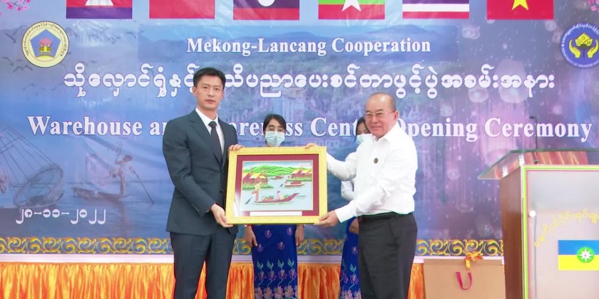 At the ceremony, the Union Minister, Chief Minister, deputy minister, head of mission of the embassy of the People’s Republic of China, chairman of Danu Self-Administered Zone opened the warehouse and information center by cutting the ceremonial ribbon.