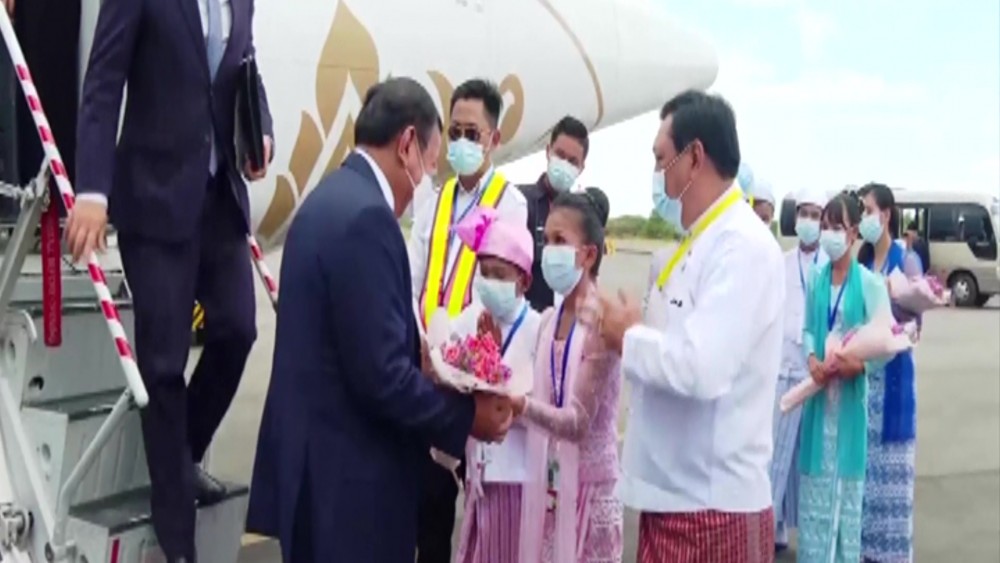 They were welcomed at the Nyaung Oo Airport by Deputy Minister for Foreign Affairs U Kyaw Myo Htut, Minister for Natural Resources and Environmental Conservation of the Mandalay Region, Director General of the Protocol Department of the Ministry of Foreign Affairs U Wunna Han and officials concerned.