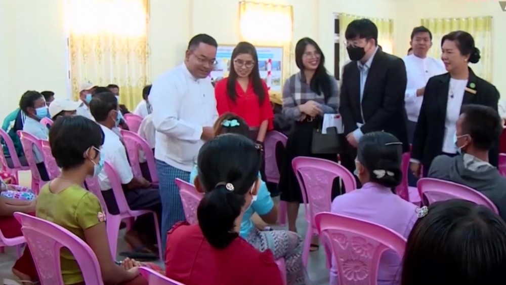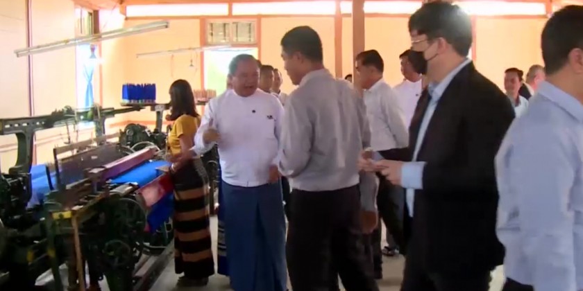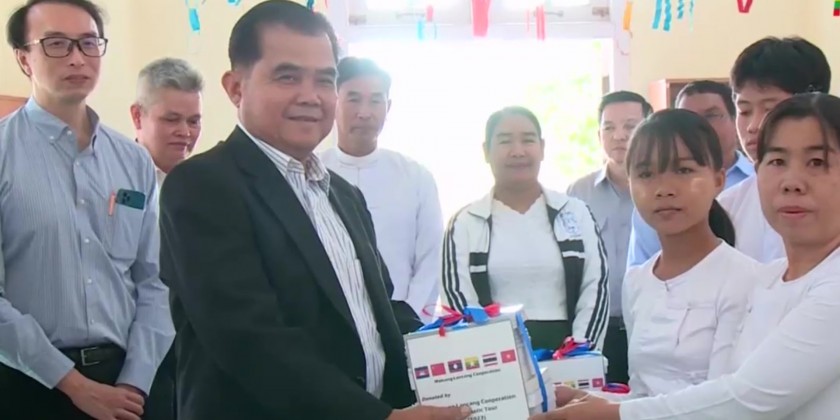 The delegates visited Aye Chan Thar Model Village in Tatkon Township, observed road, water and electricity access, weaving factory, school and library constructed under the MLC Early Harvest Project. The MLC delegation donated various books to the library of Aye Chan Thar Middle School.