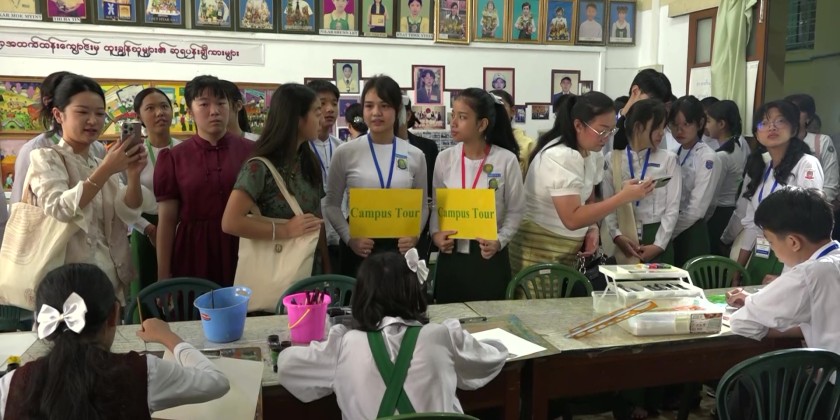On November 10th, the student representatives from China and Thailand made discussions on education systems, culture and traditions of their countries. On November 11th, representative students and officials visited Yangon University of Education Practicing High School, and Shwedagon Pagoda.