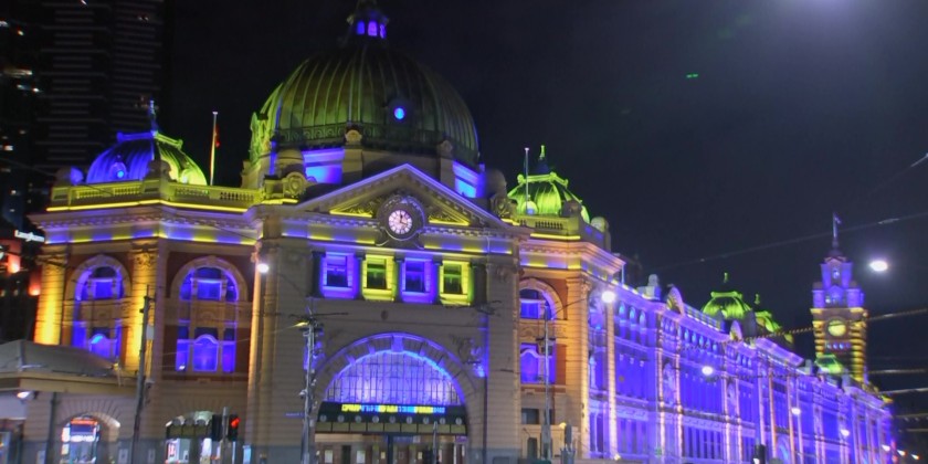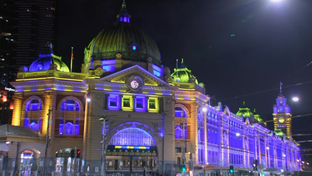Public buildings, sports stadiums and landmarks in the Australian city of Melbourne were illuminated in blue and yellow colors to show support for the people of Ukraine.