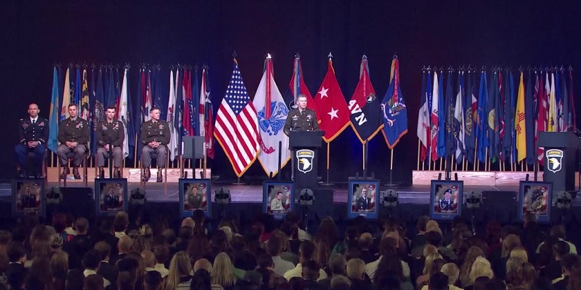 A memorial service was held Thursday for the nine service members who died in a helicopter crash March 29 near Fort Campbell, Kentucky. The military says the service members who died in a U.S. Army Black Hawk helicopter crash ranged in age from 23 to 36 and from seven states.