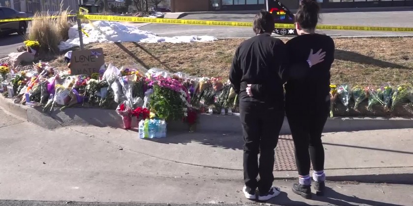 A makeshift memorial of flowers, flags and candles grew outside of a nightclub where authorities say a 22-year-old gunman opened fire late Saturday, killing five people and leaving 25 injured before he was subdued by patrons.