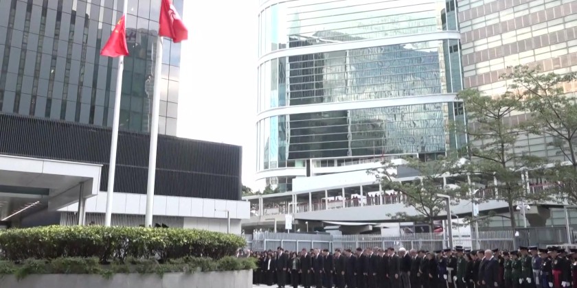 John Lee, chief executive of the Hong Kong Special Administrative Region (HKSAR), together with principal officials of the HKSAR government and civil servants, participated in a memorial service at the government headquarters on Saturday morning, paying tribute to the victims of the residential building fire in Tai Po. The national flag and the HKSAR flag were flown at half-mast at all government buildings.