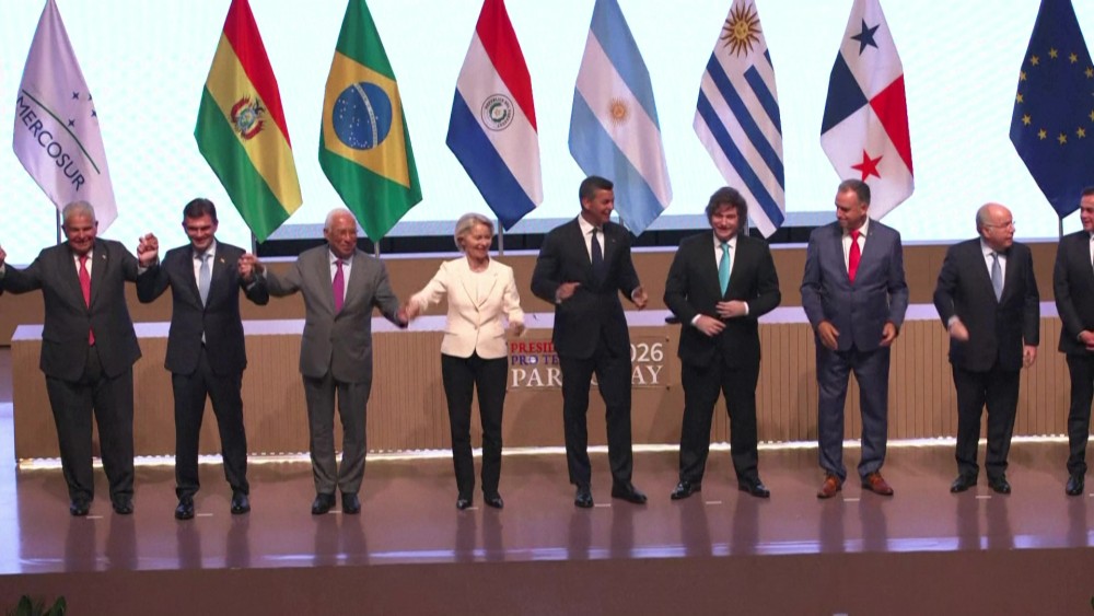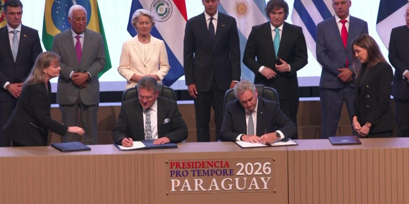 The agreement aims to reduce tariffs and expand trade between the two blocs and now awaits approval by the European Parliament, as well as ratification by the legislatures of Mercosur member states Argentina, Brazil, Paraguay and Uruguay. Paraguayan President Santiago Pena, whose country holds the Mercosur presidency, thanked leaders from both blocs for their efforts, calling Saturday "a truly historic day."