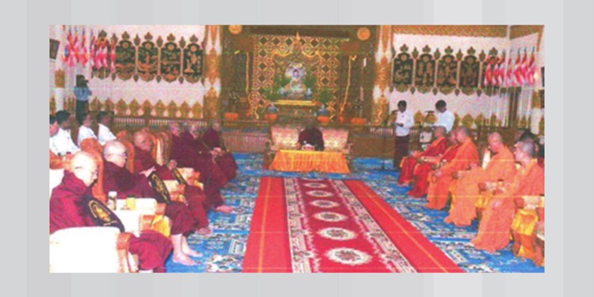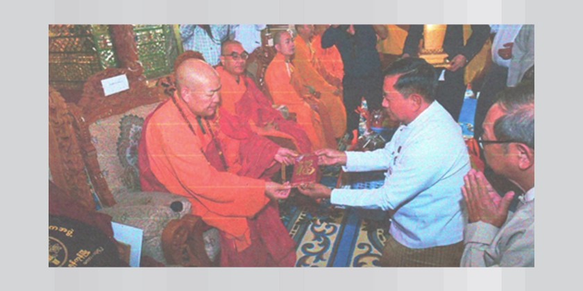 The ceremony was graced by Sayadaws led by the Chair of the State Sangha Maha Nayaka Committee, Venerable Bhaddanta Candimābhivaṃsa, and the monks led by the Abbot Venerable Shi Changzang from the Lingguang Temple (Buddha's Tooth Relic Temple) in Beijing. Yangon Region Chief Minister U Soe Thein, Deputy Minister for Religious Affairs and Culture U Aye Tun, and relevant department officials also attended.