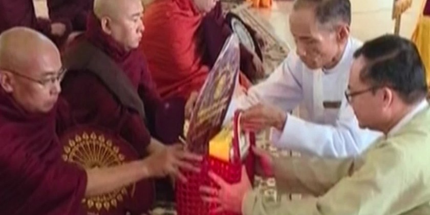 Buddhist devotees thronged to pagodas across the country, Monday to observe the fullmoon of Tazaungmone. In Nay Pyi Taw, 11th Tazaungdaing lotus-robe offering ceremony was held in conjunction with the successful conclusion ceremony of the 120th Pathana Pali chanting ceremony at Uppatasanti Pagoda.