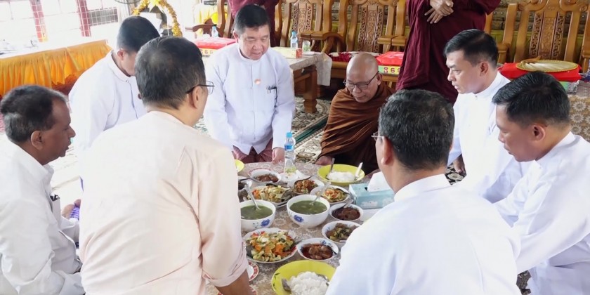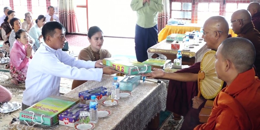 Afterwards, the Presiding Sayadaw of Daw lan Pariyatti Sarthintaik delivered a sermon and the congregation shared the merits gained. After that, the State Chief Minister and officials offered day meals to the Sanghas.