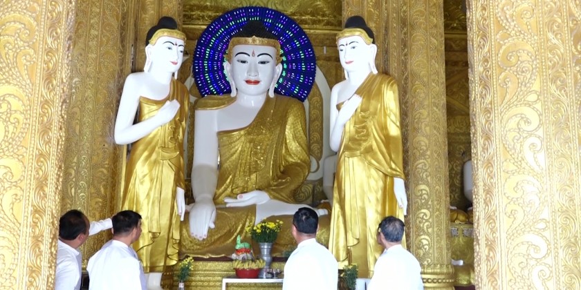 The Ceremony of renovating Buddha images by KyeikThanlan pagoda Wut Associations and sharing merits gained for the well-wishers who contributed in the completion of traditional decorative row of upright leaves on retaining wall was held at the Prayers Hall of KyeikThanlan Pagoda in Mawlamyine on Sunday.