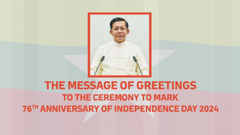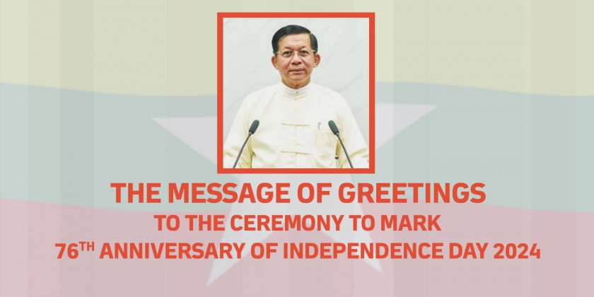 Chairman of the State Administration Council Prime Minister of the Republic of the Union of Myanmar Senior General Thadoe Maha ThraySithu Thadoe Thiri Thudhamma Min Aung Hlaing sent the message of greetings to the ceremony to mark the 76th Anniversary of Independence Day 2024 today.