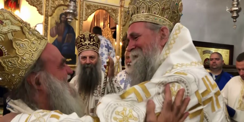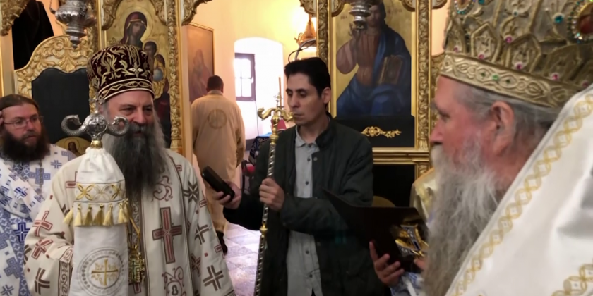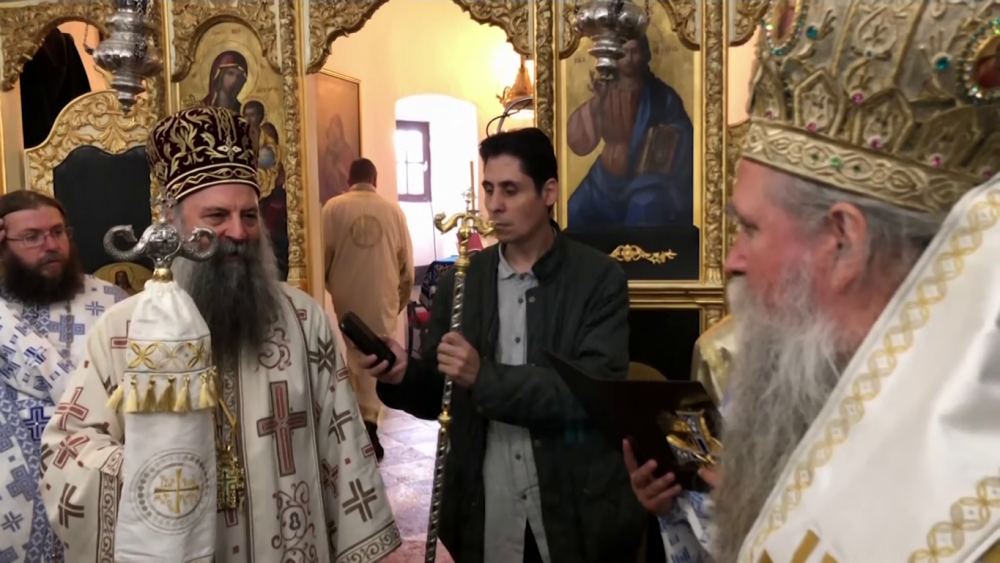 The ceremony held in the former capital of the small Balkan nation. Metropolitan Joanikije and the church's Patriarch Porfirie had arrived for the inauguration via helicopter amid heavy security.