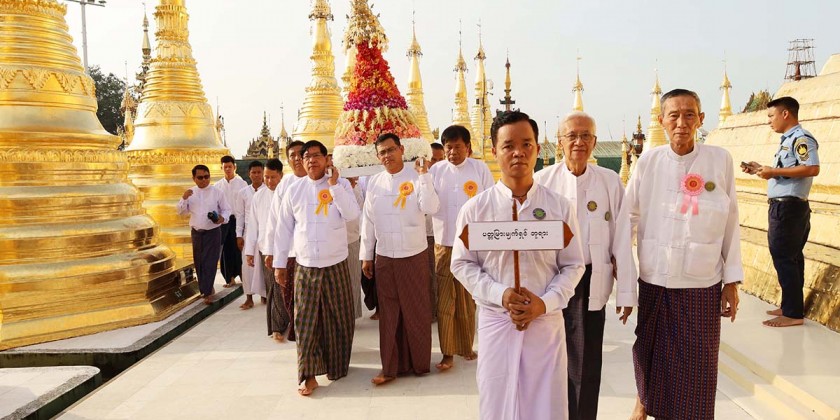 They also walked around the pagoda by conveying flower stupas and offered them at the Buddha images at the Prayer halls of the pagoda including Padamyar Myet Shin Buddha Image at the upper terrace of the pagoda.