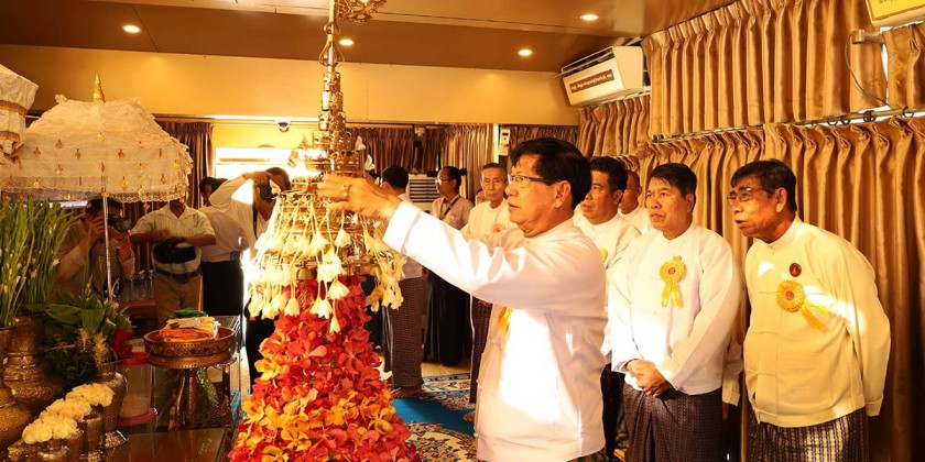 Organized by Shwedagon Pagoda Treasury Board of Trustees, the events such as offering dawn meal to the pagoda and the successful ceremony of non-stop Paritta recitation were held at the designated places of the pagoda platform. The Yangon Region Chief Minister and party, Pagoda Board of Trustees and religious Wut Association offered Hsoon, flowers, water, lights and fruits to the pagoda, recited religious verses and shared the merits gained.