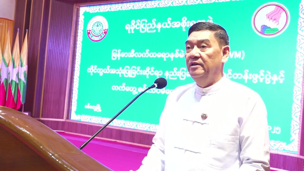 In his opening speech, Chief Minister U Htein Lin stated that this upcoming election will be the first in Myanmar's electoral history to utilize electronic voting machines. He emphasized that since using MEVMs is a first for the country, it's crucial for voters to be able to cast their ballots easily and for those handling the machines to do so systematically. He urged the trainees to focus on learning and understanding the theoretical and practical aspects of the MEVMs, to diligently practice and follow the operational guidelines, and to approach this as a national duty, collaborating effectively.
