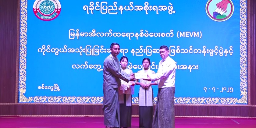 Under the supervision of the Rakhine State Government, the Rakhine State Election Sub-Commission led the opening of the Myanmar Electronic Voting Machine (MEVM) Handling and Usage Training of Trainers Course. The ceremony took place on the morning of July 7 at U Ottama Hall in Sittwe, with Rakhine State Chief Minister U Htein Lin attending and delivering the opening remarks.