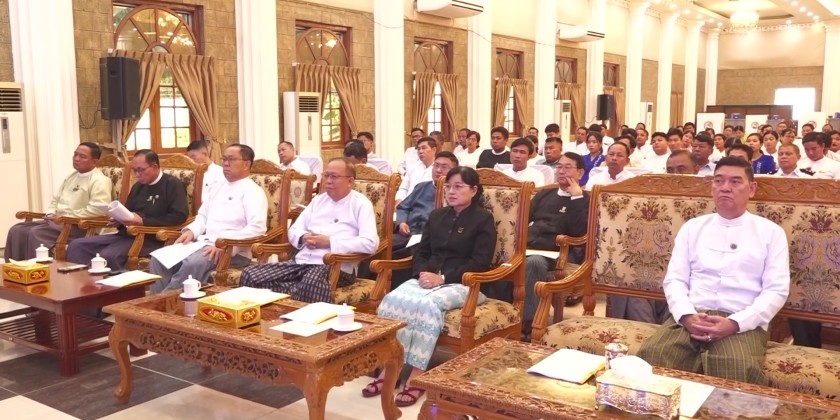 Following his speech, Chief Minister U Htein Lin presented cash assistance for the trainees, which were accepted by the State Election Officer.