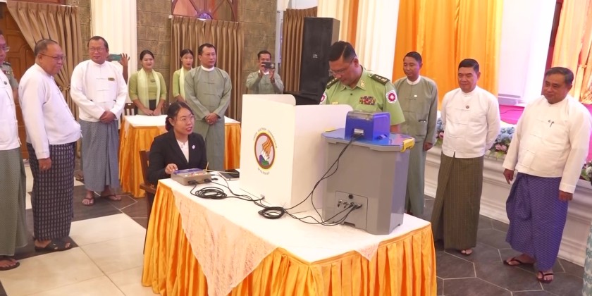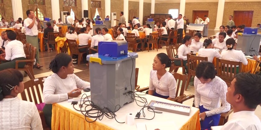 The Rakhine State Chief Minister and officials then observed demonstrations of voting with the MEVM. They warmly met and greeted the trainees who will attend the course and toured the voting machines prepared for practical demonstrations.