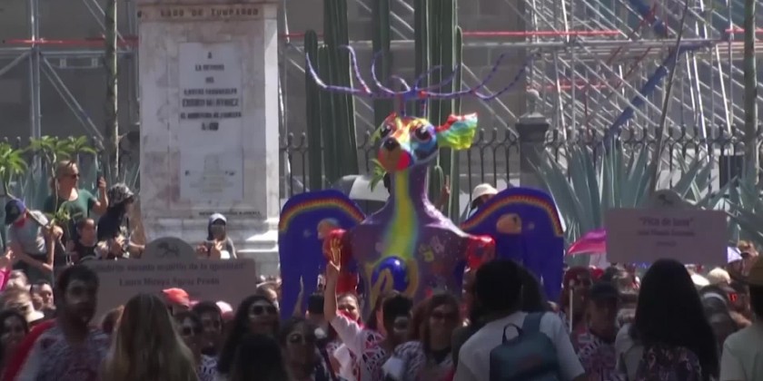 Nightmares of artisans transformed into colorful cardboard monsters were paraded on Saturday at Mexico City Center, along streets and avenues.