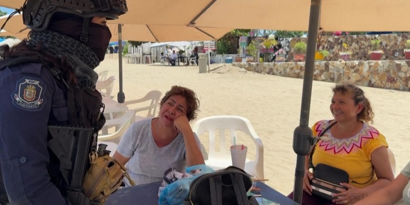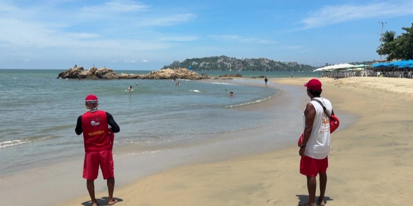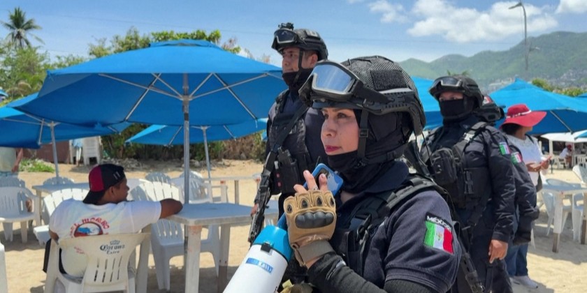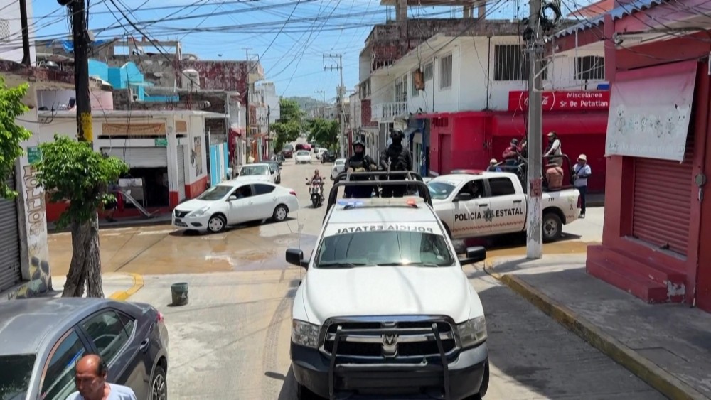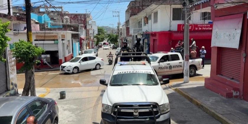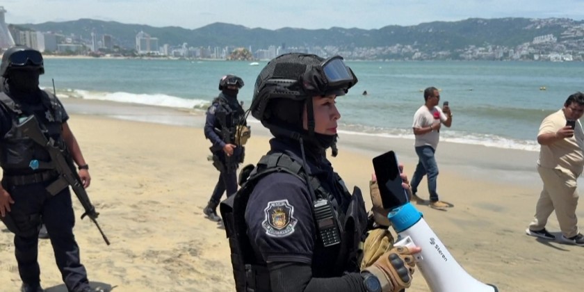 Local police in Acapulco, Mexico warn people on beach and in the streets of tropical storm Erick. A tropical storm bore down on Mexico's Pacific coast Tuesday, likely strengthening to a hurricane bringing life-threatening heavy rains in the days to come, the US National Hurricane Center (NHC) said.