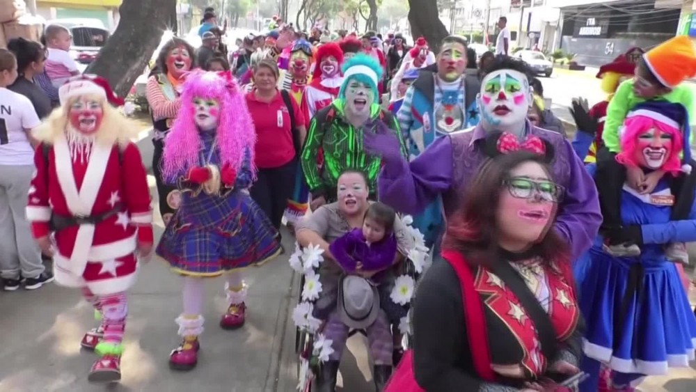 There was lots of funny business going on in the streets of Mexico City on Tuesday as the clowns filled the streets of the capital with bursts of color and sound as they made their annual pilgrimage to the Basilica of Our Lady Guadalupe.