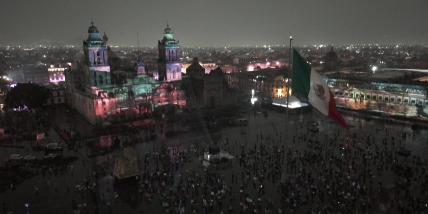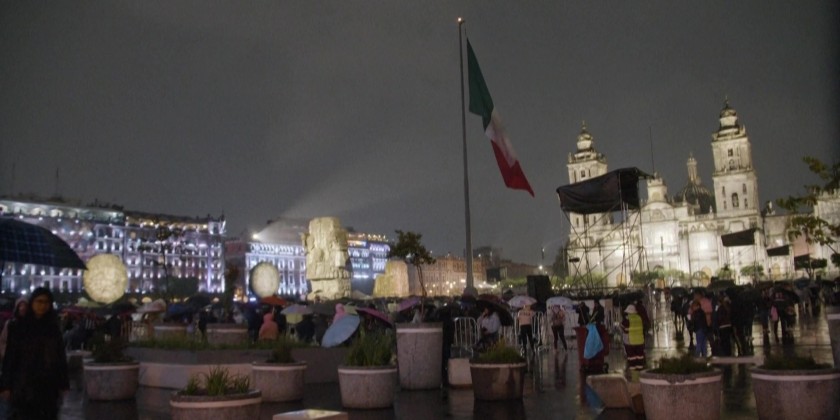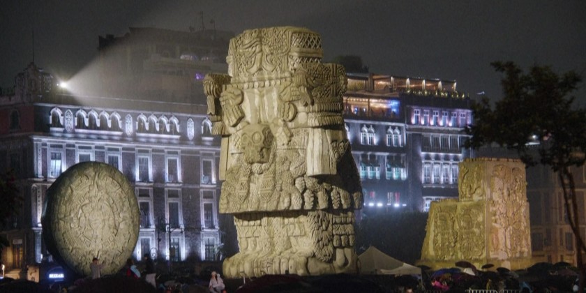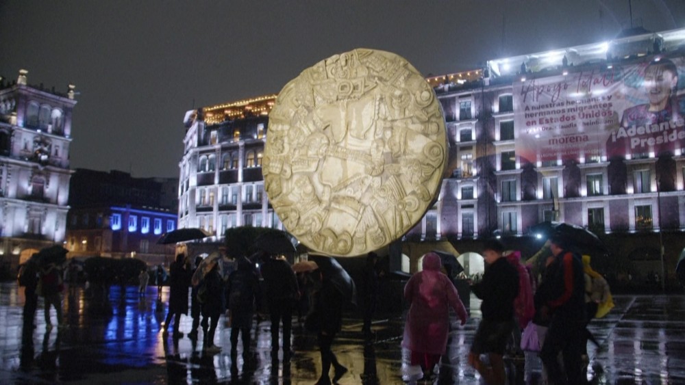 Aztec temples rise again in Mexico City, at least digitally, during a light and sound show projected to commemorate the 700th anniversary of the founding of the ancient Aztec city of Tenochtitlan, now known as Mexico City. Dozens of people gather in Constitution Plaza, the country's most important public square, to watch the story of the capital's foundation and remember battle scenes between the Mexica and the Spanish during the colonial times.