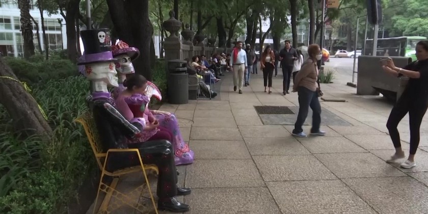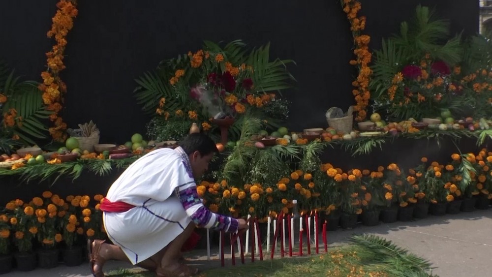 Mexico City on Friday added the final touches to its public displays for the annual Day of the Dead celebrations. More than 180 artisans helped to decorate 32 altars, representing the traditions and cultural heritage of Mexico, in the capital's main Zocalo square. At the same time, a display of more than 30 giant skeleton women wearing traditional costumes from every state opened to the public.