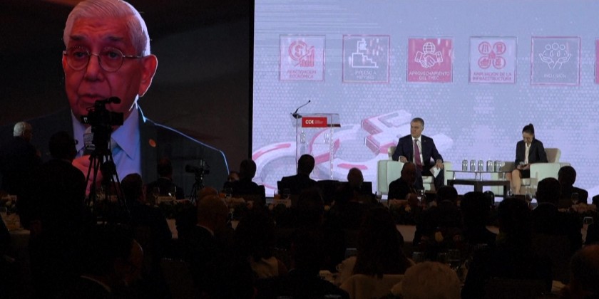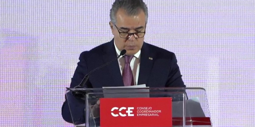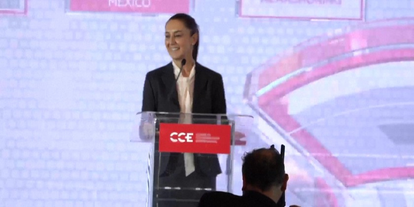 Mexico President-elect Claudia Sheinbaum Wednesday promises tougher measures to fight extortion during an event with business leaders in the capital Mexico City.