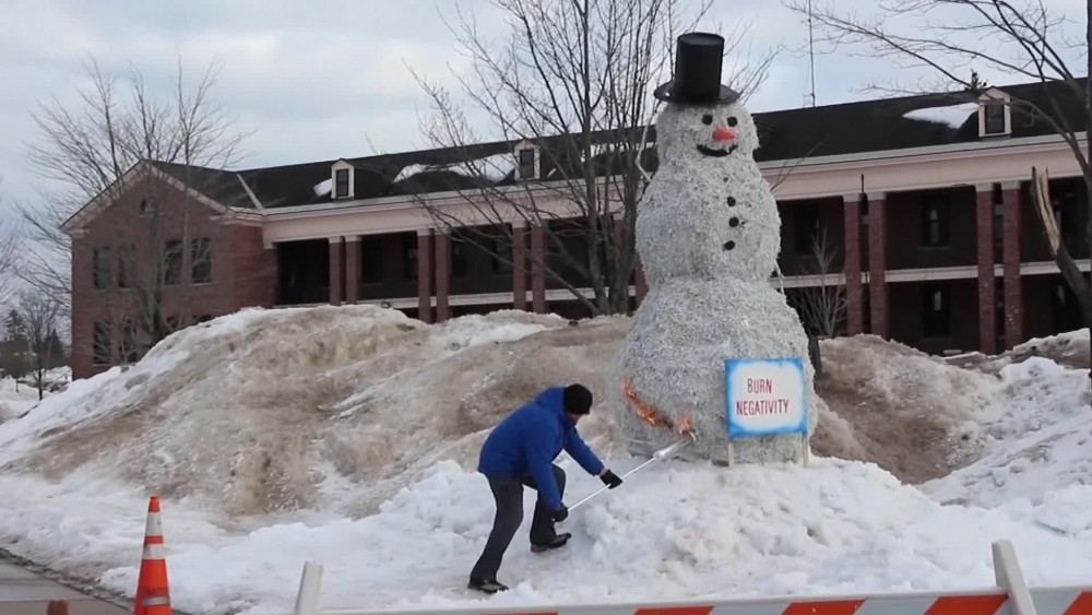 A Michigan university celebrated the arrival of spring by continuing its half-century tradition of burning a snowman effigy. The Snowman Burning event was held Monday on the campus of Lake Superior State University.